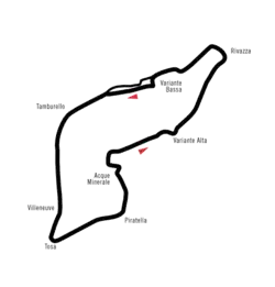 26. a b Fred Sabino (28 de abril de 2019). «Famoso pela morte de Ayrton Senna, autódromo de Imola era dos mais rápidos e desafiadores». globoesporte.com. Globo Esporte. Consultado em 6 de maio de 2019
