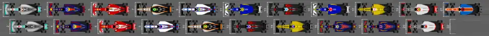 ↑1 - Jolyon Palmer (Renault) não obteve o tempo de volta no Q1, porém foi autorizado a largar.