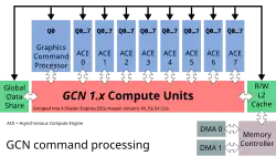 O Processador de Comando Gráfico (Graphics Command Processor, GCP) é uma unidade funcional da microarquitetura GCN. Entre outras tarefas, é responsável pelo manuseio de shaders assíncronos.[9]