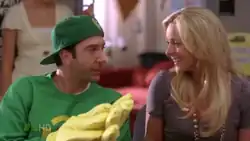![]() Greenzo (David Schwimmer; esquerda) em uma conversa com Jenna Maroney (Jane Krakowski). Schwimmer foi bastante elogiado pelo seu desempenho no episódio | |