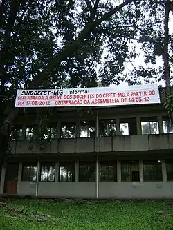 Faixa no campus II do Centro Federal de Educação Tecnológica de Minas Gerais indicando a deflagração da greve