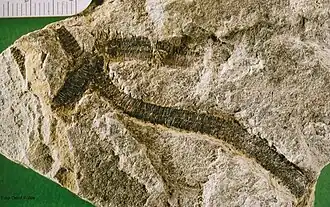 | Vendotaenia | V. antiqua[14] | Formação Guaicurus, Formação Tamengo, Formação Bocaina, região de Corumbá, Serra da Bodoquena | ||