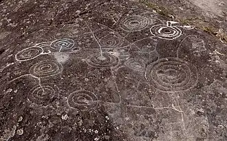 Petróglifo dos Carballos, em Campo Lameiro, Galiza.