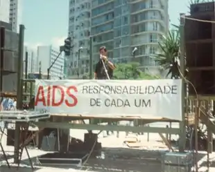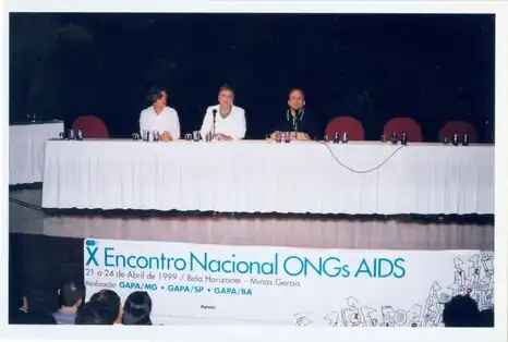 - ↑ a b Barros, Sandra Garrido (2013). A política nacional de luta contra a aids e o espaço aids no Brasil (Tese de Doutorado em Saúde Coletiva). Instituto de Saúde Coletiva, Universidade Federal da Bahia, Salvador. Consultado em 19 de maio de 2022