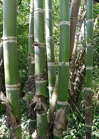Planta rizomatosa , perene , possui caules de 6 a 20 m de altura e lâminas foliares linear-lanceoladas. Seu diâmetro máximo é de 20 cm .
