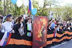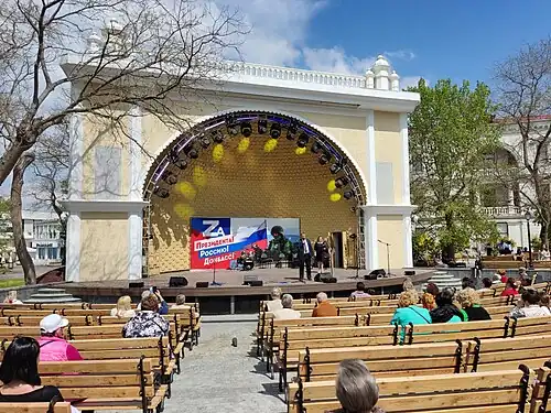 O governo russo usa o símbolo "Z" como uma ferramenta de propaganda pró-guerra; civis russos o mostram como um sinal de apoio à invasão.[77]