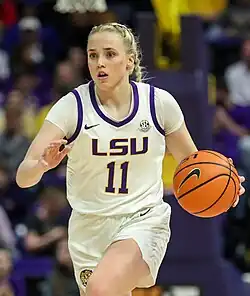 | 2023-24 | LSU | 33 | 33 | 31,3 | .378 | .339 | .833 | 2,4 | 3,6 | 1,3 | 0,4 | 2,6 | 11,6 | 383 |