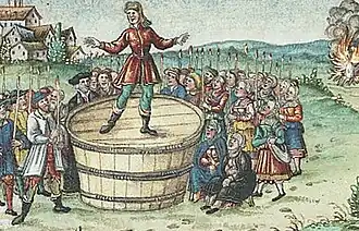 Durante a sua primeira primeira pregação, em frente à pequena igreja de Niklashausen, Hans Böhm, em um sinal de desprendimento dos bens materiais, queimou seu tambor, o que causou grande repercussão.