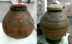 Na cultura do Cemitério H (a fase tardia harapeana na região de Punjabe), alguns dos desenhos pintados nas urnas funerárias foram interpretados pelas lentes da literatura védica: por exemplo, pavões com corpos ocos e uma pequena forma humana no interior, que foi interpretada como a alma dos mortos, e um cão que pode ser visto como o cão de Iama, o deus da morte.[188][189] Isso pode indicar a introdução de novas crenças religiosas durante esse período, mas as evidências arqueológicas não sustentam a hipótese de que o povo do Cemitério H seja o destruidor das cidades harapeanas.[190]