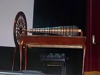 A harmónica de vidro é constituída por um conjunto de taças de vidro semi-esféricas, de vários tamanhos, parcialmente inseridas uma dentro da outra por ordem de tamanho, de modo a fazer uma escala diatónica. Essas taças estão montadas num eixo que atravessa o centro dessas mesmas taças, e encontram-se semi-imersas num recipiente com água. Um sistema de pedal aciona o eixo de modo a que as taças girem no eixo. O instrumento é tocado friccionando os dedos em cada uma das taças umedecidas, uma para cada nota.