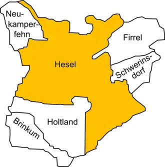 | Localização de Hesel no distrito de Leer | |