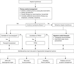 | Tratamento | Tratamento médico, toracocentese, transplante de fígado, cuidados paliativos |