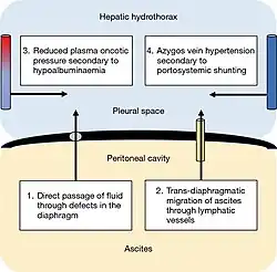 - ↑ a b c d Pippard, Benjamin; Bhatnagar, Malvika; McNeill, Lisa; Donnelly, Mhairi; Frew, Katie; Aujayeb, Avinash (1 de setembro de 2022). «Hepatic Hydrothorax: A Narrative Review». Pulmonary Therapy (em inglês). 8 (3): 241–254. ISSN 2364-1746. PMC 9458779