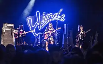 Hinds é uma banda espanhola de indie rock, formada em Madrid, em 2011. É composta por Carlotta Cosials (voz, guitarra), Ana García Perrote (voz, guitarra), Ade Martin (baixo, backing vocals) e Amber Grimbergen (bateria) .Retomaram a atividade em 2013 publicando versões de alguns de seus grupos favoritos; em abril de 2014 publicaram Bamboo e Trippy Gum no Bandcamp e chamaram a atenção de numerosos meios de comunicação internacionais. Desde então têm se apresentado na Grã-Bretanha, França, Portugal, Alemanha, Noruega, Dinamarca, Holanda, Tailândia, Austrália e Estados Unidos, sendo banda principal em diversos festivais[1] O nome original da banda era Deers, mas eles o mudaram no final de 2014 após uma ameaça de ação legal da banda de mesmo nome The Dears.[2] O grupo escolheu "Hinds", uma palavra que significa "veados femininos", como o novo nome da banda e implementou oficialmente a mudança de nome em 7 de janeiro de 2015.[3]