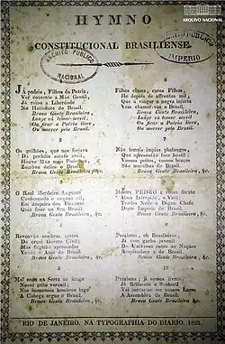 | Composição | D. Pedro I, 7 de setembro de 1822 |