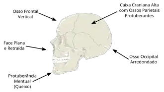 Em linhas gerais o esqueleto de um Humano Anatomicamente Moderno pode ser descrito formalmente por algumas medidas métricas da morfologia do Crânio e Pós-crânio,[14][15][13][16] propostas inicialmente por Michael Day e Christopher Stringer no Congresso Internacional de Paleontologia Humana de 1982, sediado em Nice.[17]