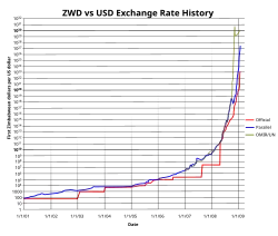 - ↑ «The Death of the Zimbabwe Dollar». Global Financial Data. 24 de janeiro de 2018. Consultado em 17 de abril de 2010. Arquivado do original em 23 de setembro de 2015