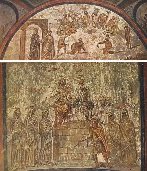 Nas imediações do arcossólio de Víbia estão outros dois, cujas cenas pintadas fazem referência ao culto de mistério de Mitra: no primeiro, o personagem principal é um miles, um soldado, defunto e cujo nome é desconhecido; no segundo está o túmulo de um certo Carico e de uma outra pessoa cuja inscrição diz: "M. Aurelio sacerdos dei Solis Invicti Mithrae".