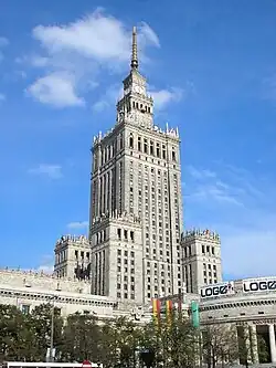 Varsóvia e outras cidades em ruínas foram limpas de escombros - principalmente à mão - e reconstruídas com grande rapidez (um dos sucessos do Plano Trienal)[26] às custas de antigas cidades alemãs como Wrocław, que muitas vezes forneciam a construção necessária material.[27] Wrocław, Gdańsk, Szczecin e outras antigas cidades alemãs também foram completamente reconstruídas.