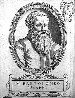 Em 1570, Bartolomeo Scappi, cozinheiro do Papa Pio V, escreveu uma obra dividida em quatro volumes, mostrando um panorama completo da culinária italiana daquele período. Contém mais de 1000 receitas, incluindo informações sobre a disposição de banquetes e menus, assim como ilustrações de utensílios de cozinha e salão. Esse livro difere-se dos demais, voltados às cortes, por preferir animais domésticos aos de caça.