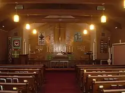 Most congregations of Russian Mennonite heritage displayed both the national and the Christian flag in the church sanctuary.