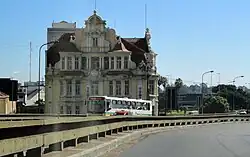 Para fazer face à despesa, o governo passou a tomar empréstimos no exterior, iniciando a acumulação de significativa dívida externa. Entre 1909 e 1928 a cidade pediu empréstimos no valor de 600 mil libras esterlinas mais quase 10 milhões de dólares, além de ter de arcar com a contratação de um grande número de novos funcionários públicos.[31] Esse programa de governo, o Plano Geral de Melhoramentos, resultou também em uma onda de construções públicas de caráter monumental, renovando a paisagem urbana segundo a estética do ecletismo, a qual, por influência da prestigiada comunidade alemã, foi rapidamente imitada pelas elites para a construção de seus novos palacetes. Foi quando se ampliou o porto num projeto vasto e ambicioso, e se ergueram alguns dos mais significativos e luxuosos prédios públicos da capital, na chamada "fase áurea" da arquitetura portoalegrense. Alguns desses edifícios são carregados de simbolismos éticos, sociais e políticos, que se revelavam mais conspicuamente na decoração alegórica das fachadas. São exemplos bem ilustrativos dessa tendência o Paço Municipal, a Biblioteca Pública, os Correios e Telégrafos e a Delegacia Fiscal, boa parte deles construídos pela parceria entre o arquiteto Theodor Wiederspahn, o engenheiro Rudolf Ahrons e o decorador João Vicente Friedrichs, todos de origem alemã.[3][32]