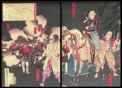A traição de Ashikaga trouxe graves consequências aos regentes, e o exército do general foi dizimado. Entretanto, golpe definitivo surgiu pouco depois,[99] quando um guerreiro chamado Nitta Yoshisada se uniu aos partidários imperiais, aumentando as suas forças. Nitta e o seu exército partiram para Kamakura e venceram os Hōjō.[100][101]