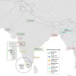 Além de judeus expatriados[11] e imigrantes recentes, existem 8 grupos judeus na Índia: