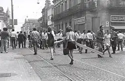 O crescimento salarial iniciado em 1950 elevou os preços.[114] A inflação aumentou mais rapidamente, e os salários reais caíram.[114] A alta inflação levou a um plano de estabilização que incluiu uma política monetária mais restritiva, cortes nos gastos públicos e aumentos em impostos e preços de serviços públicos. A crescente preocupação econômica ao longo da década de 1950 foi uma das principais causas da queda de Perón na Revolução Libertadora de 1955, pois as classes trabalhadoras viram sua qualidade de vida diminuir, retirando de Perón grande parte de seu apoio popular.[114]