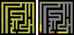 Esteiras microbianas são colônias multicamadas e multiespécies de bactérias e outros organismos que geralmente têm apenas alguns milímetros de espessura, mas ainda contêm uma ampla variedade de ambientes químicos, cada um favorecendo um conjunto diferente de microrganismos.[85] Até certo ponto, cada esteira forma sua própria cadeia alimentar, já que os subprodutos de cada grupo de microrganismos geralmente servem como "alimento" para grupos adjacentes.[86]