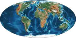 O Pleistoceno estende-se de 2,588 milhões de anos atrás a 11,700 anos antes do presente.[8] Os continentes modernos estavam essencialmente em suas posições atuais durante o Pleistoceno, as placas sobre as quais eles se assentam provavelmente não se moveram mais do que 100 km (100 mi) entre si desde o início do período.