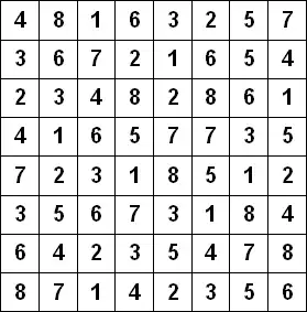 - Qualquer número que estiver na mesma fileira ou coluna que um número branco circundado idêntico deve ser preto.