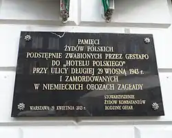 - ↑ a b c Agnieszka Haska (2006). "Jestem Żydem, chcę wejść": Hotel Polski w Warszawie, 1943. [S.l.]: Wydawn. IFIS PAN. pp. 5–6. ISBN 978-83-7388-096-2