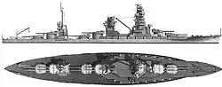 | Armamento | 12 canhões de 356 mm 20 canhões de 140 mm 4 canhões de 76 mm 6 tubos de torpedo de 533 mm |