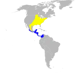 A área de distribuição invernal da subespécie designada estende-se desde as planícies costeiras do centro de Sinaloa e do sul de Veracruz até ao norte da Colômbia e noroeste da Venezuela. A subespécie ocre foi observada durante o inverno na encosta do Pacífico do México.[4]