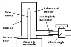 Quando a mistura ar/combustível era comprimida, parte dela era injetada no tubo. Quando ela atingia a parte do tubo que estava rubra a ignição ocorria. Nos primeiros modelos o tempo entre as ignições era controlado ajustando a posição do ponto rubro do tubo, alterando a posição do queimador ao longo do tubo. Versões posteriores exerciam o mesmo controle mantendo o queimador numa posição fixa e alterando o comprimento do tubo mecanicamente.[1]