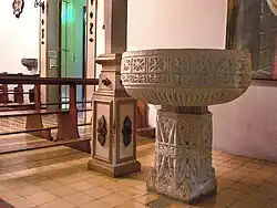 Em seguida se abrem portas com moldura em madeira para uma capelinha-confessionário à esquerda, e para uma área de circulação à direita. Adiante, na parede esquerda, está uma tribuna em madeira, de decoração semelhante ao coro, e à direita uma capela moderna em estilo de gruta, escavada na grossa parede do templo, com imagens de Nossa Senhora de Lourdes e da vidente Bernadette.