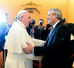 - ↑ «El papa Francisco recibió a Alberto Fernández y el Vaticano destacó las "buenas relaciones bilaterales"» (em espanhol). infobae. Consultado em 16 de maio de 2021