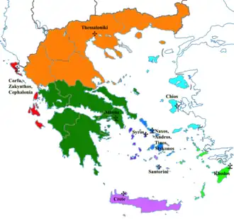 - ↑ «Greece | Catholics & Cultures». www.catholicsandcultures.org (em inglês). Consultado em 20 de agosto de 2024