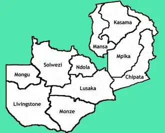 Circunscrições eclesiásticas católicas da Zâmbia[2][10]