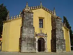 Fachada Sul da igreja, com a torre sineira ao fundo.