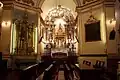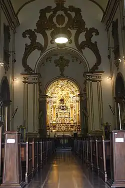 No interior, a zona do transepto tem uma cúpula octogonal, decorada com pinturas do século XVIII e aberturas para a entrada de abundante luz.[11][12] O transepto possui um altar dedicado a São Miguel e outro notável retábulo dedicado a Nossa Senhora da Conceição, realizado entre 1736 e 1740 pelo entalhador Luís Rodrigues Lisboa.[13][11][14] Este último, de talha erudita em estilo joanino, possui anjos atlantes que sustentam colunas salomônicas, uma novidade na São Paulo da época. Além disso apresenta outras características do estilo, como anjos sentados sobre volutas e trono escalonado.[13] Sobre o trono localizava-se um conjunto escultórico de São Francisco recebendo as chagas, que na reforma de fins do século XVIII passou a ocupar o novo retábulo-mor, realizado em estilo rococó por José de Oliveira Fernandes em 1791.