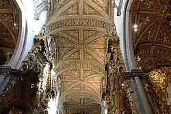 A principal campanha artística foi levada a cabo na primeira metade do século XVIII, quando a maior parte das superfícies interiores, incluindo paredes, colunas, capelas laterais e telhado, foram revestidas com talha dourada barroca.