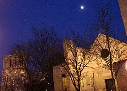 Fachada da igreja, à noite, ao lado esquerdo da Catedral de Notre-Dame | |