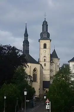 A igreja é o local religioso mais antigo existente na cidade de Luxemburgo.[1] A primeira igreja foi construída no local em 987 como capela do castelo do Conde de Luxemburgo. No entanto, ao longo dos séculos seguintes, o edifício foi destruído, reconstruído e renovado várias vezes. O seu formato actual data de 1688 e reúne os estilos arquitectónico românico e barroco, anteriores ao barroco Moselle nacional. O edifício foi restaurado desde então, preservando a sua forma original, em 1960, 1980 e 2003 – 2004.