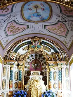 Há no transepto duas capelas: do lado do Evangelho, a das Almas, e do lado da Epístola, a de Nossa Senhora do Rosário. Ao lado da capela-mor do lado da Epístola, existia a capela do Santíssimo Sacramento, atualmente da invocação do Coração de Jesus. Junto da porta principal, do lado do Evangelho, encontra-se a capela de Nossa Senhora da Soledade e o batistério.