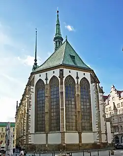 - ↑ «Saint James' Church, Brno, Czech Republic - SpottingHistory.com». www.spottinghistory.com (em inglês). Consultado em 10 de março de 2021