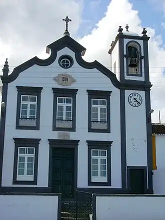 Sobre o vão central do piso superior existe uma cartela com a data 1901, mais acima, um óculo circular e, sobre o vértice da cornija, uma cruz.