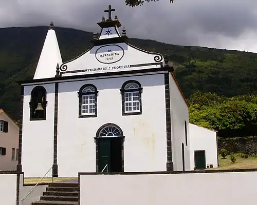 Este templo foi inaugurado em 1879, conforme cartela no frontão. Segundo o padre Júlio da Rosa, pároco da Igreja de Nossa Senhora das Angústias, na Horta, a sua edificação foi devida a um caso de política local.