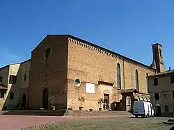 As obras foram iniciadas em 1280 e provavelmente terminaram por volta de 1298. Totalmente construída em tijolo, a estrutura da igreja é simples e austera, com janelas delgadas nos lados, coroadas por uma cornija. A igreja tem características derivadas da arquitetura românica e gótica. Na fachada só se abrem a porta principal e um óculo com a moldura decorada.